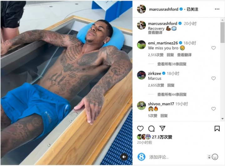 直播吧5月4日讯拉什福德更新社媒动态,晒出自己进行恢复的视频。